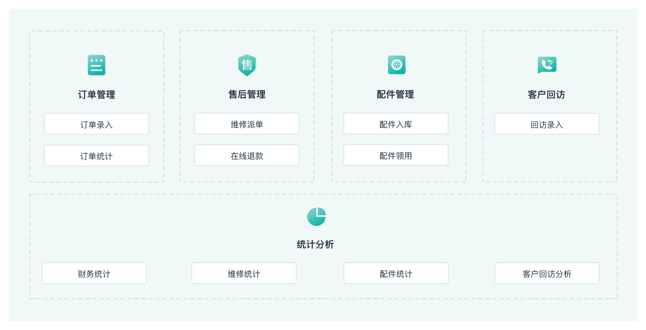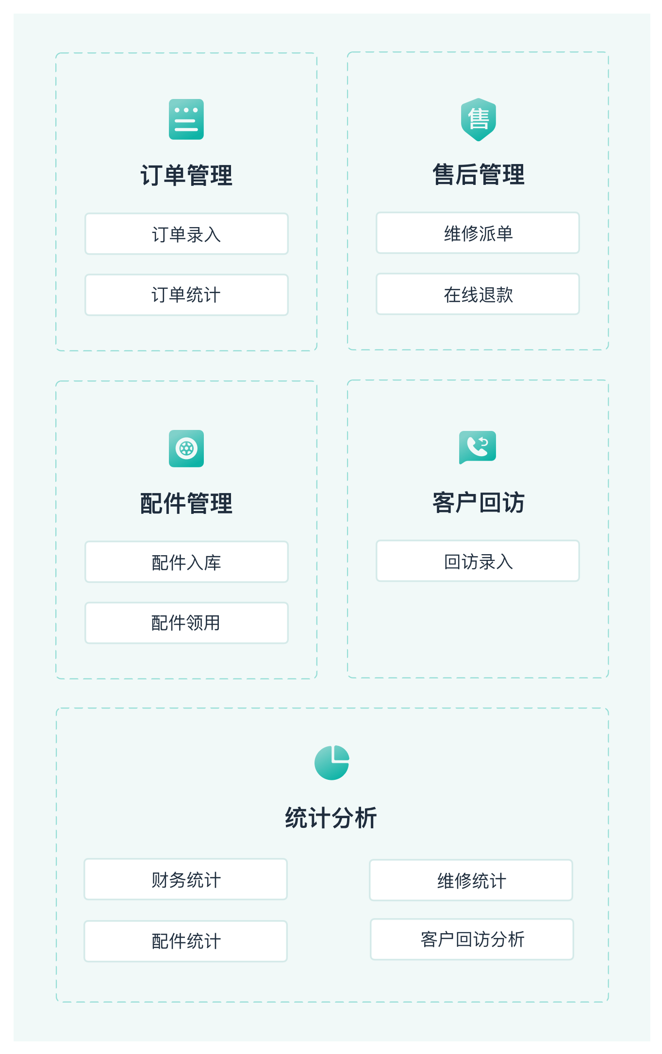 解决企业组织的订单、配件、维修、退款等管理难题,实现个性化售后服务管理