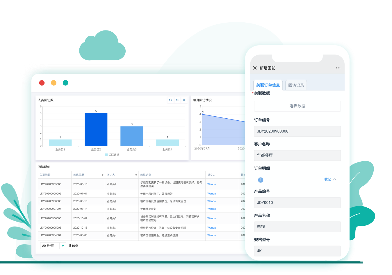 现在的简道云回访管理:客户购买、售后、回访形成完整闭环,回访记录直接关联订单,将提升客户满意度落到实处。