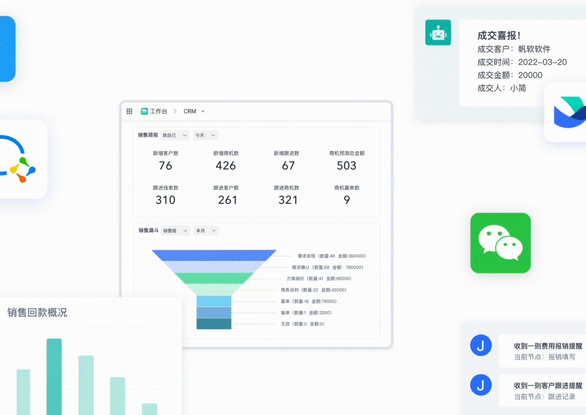 简道云CRM可整应用增删改,满足多事业部、多销售团队、应用修改、版本管理等场景