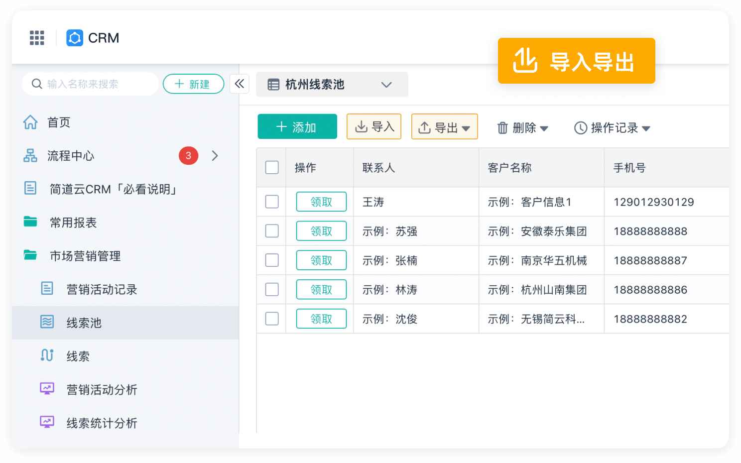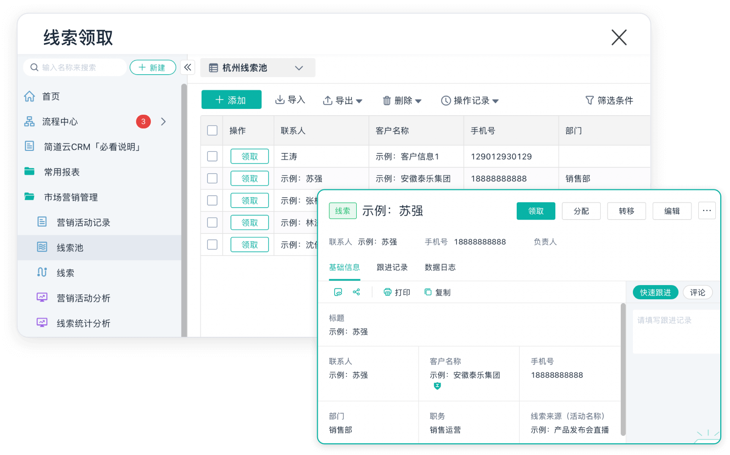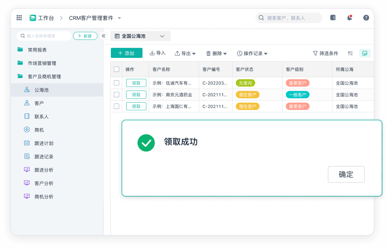 【自定义模块】按企业实际客户管理流程,自选客户/线索/商机/跟进组合