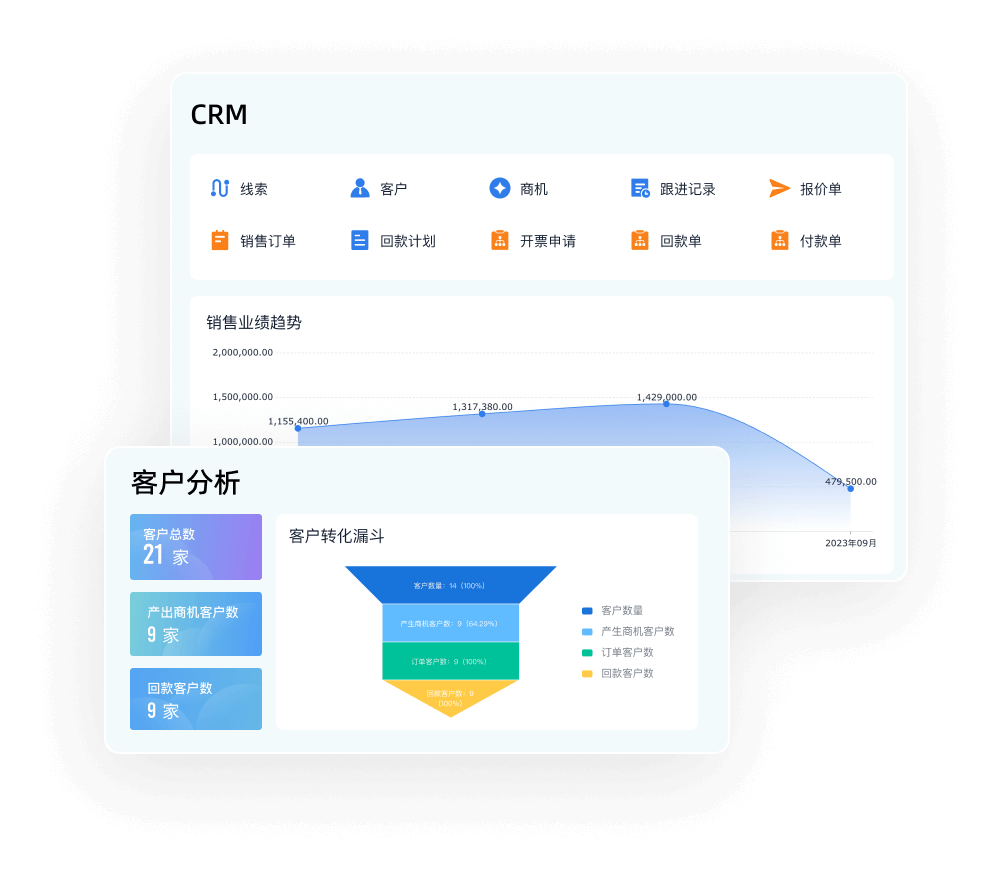 客户、商机、线索等模块随心选择,自定义权限控制,实现功能增删改