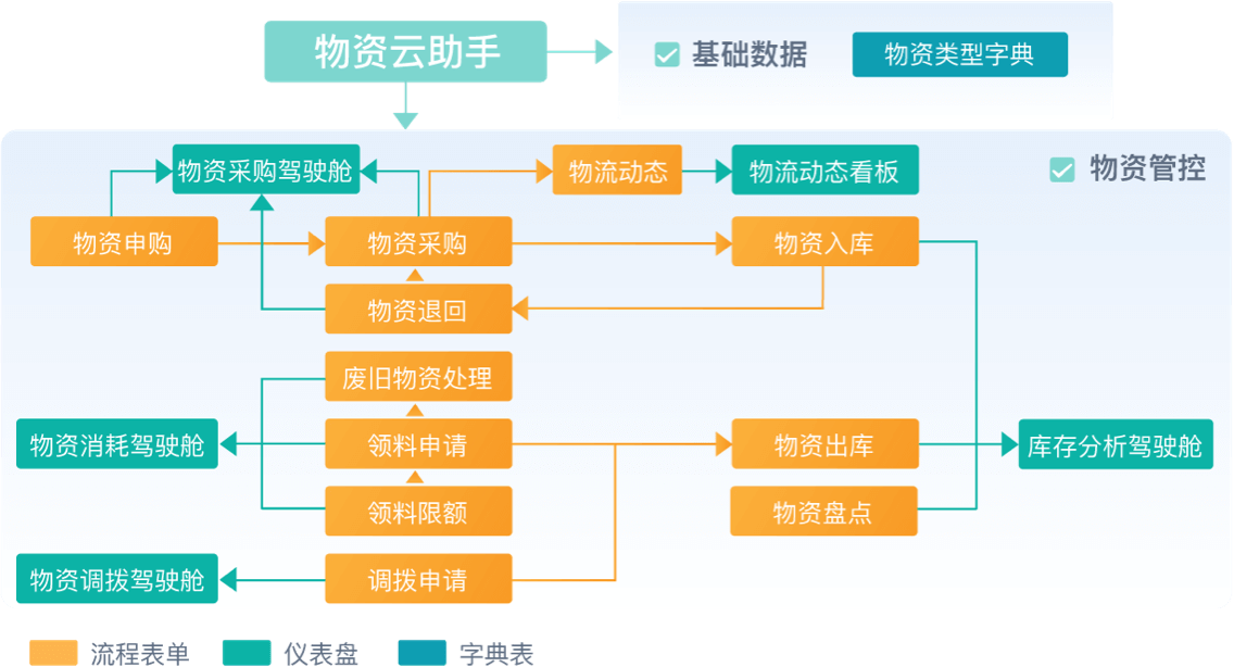 建立物资从需求、运输、入库盘点到消耗、调拨五个环节的完整流程。物资需求与实际采购量形成对比,保障物资及时到场;入库出库自动计算库存剩余量,可实时接收库存预警;可根据实际生产需求设置领料限额,防止物资浪费。