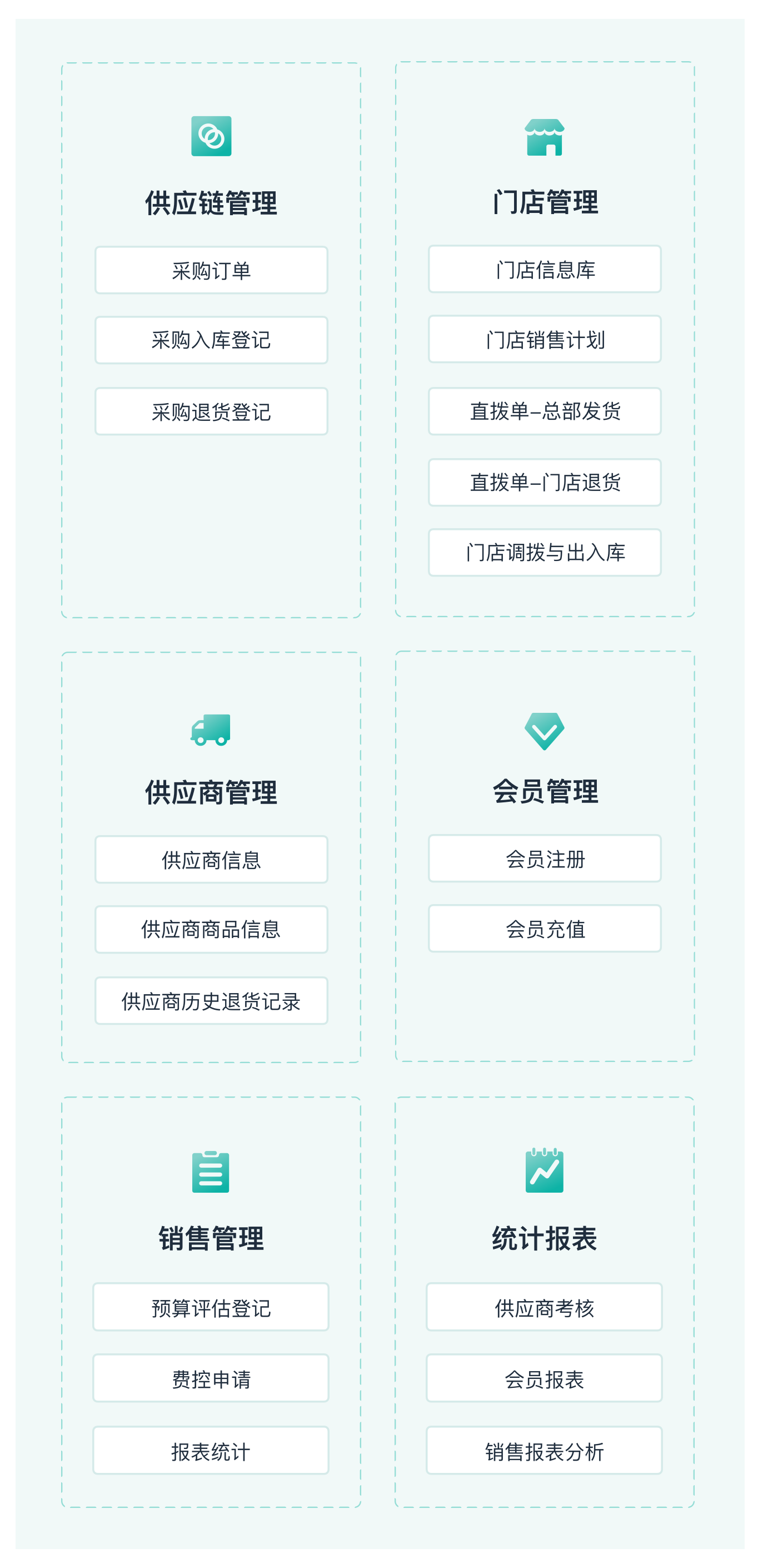 规范供应链、门店、销售、会员管理等流程,实现数据连通、上下一致