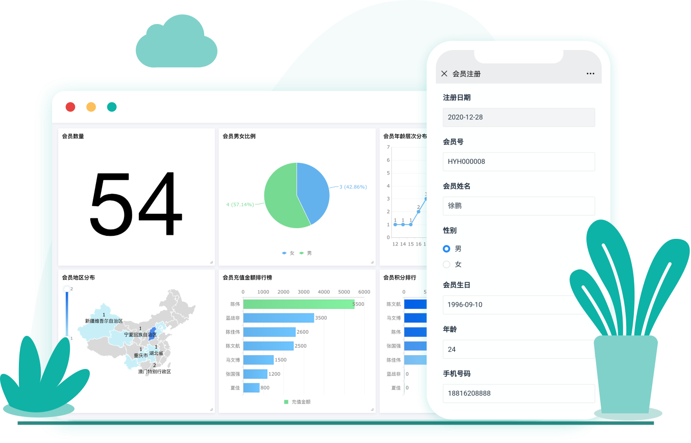 现在的简道云会员管理:客户数据在线归档,多维分析客户群,明确经营重点及方向。