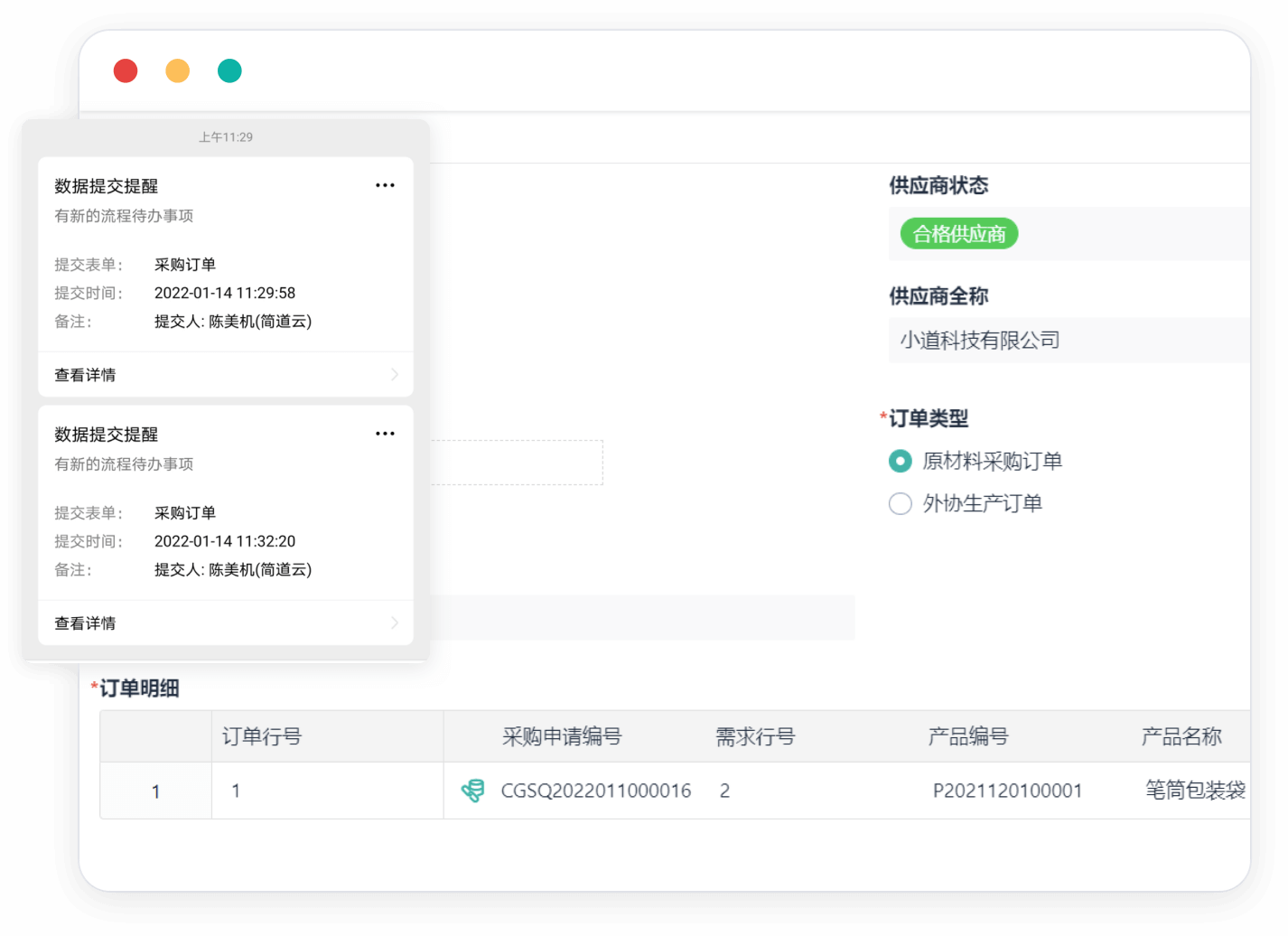 同时企业可在平台基础上进行个性化的零代码开发,满足企业灵活多变的采购业务需求,操作简单易上手,通过拖拽和基础参数设置,最快1小时即可上线新的采购管理功能。
